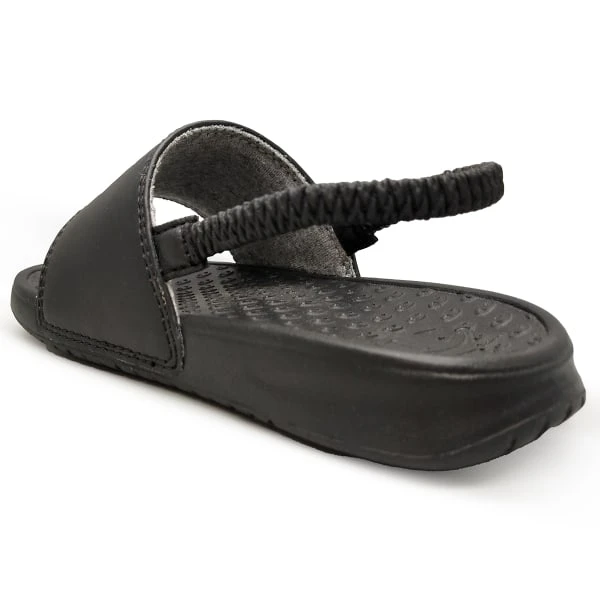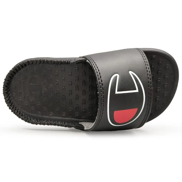 Champion Slides level up their sport look from class to laidback weekends. Slip-on ease with a contoured footbed to cushion feet. Logo print on repeat with an embossed C logo on the upper and a soft, brushed lining for comfort. Textured logo tread for added traction. Style them with their fave socks to add a sporty vibe to shorts or sweats.