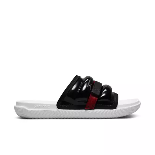 When it comes to comfort and style, look no further than the Men’s Jordan Super Play Slide Sandals. These lightweight sandals feature a contoured footbed for superior cushioning and arch support, and the adjustable straps provide a secure and comfortable fit. The Nike Jordan logo is prominently displayed on the strap, so you can show off your style wherever you go. The durable rubber outsole ensures traction on a variety of surfaces, so you can take on your day with confidence. With their sleek design and modern construction, the Men’s Jordan Super Play Slide Sandals are perfect for post-practice.