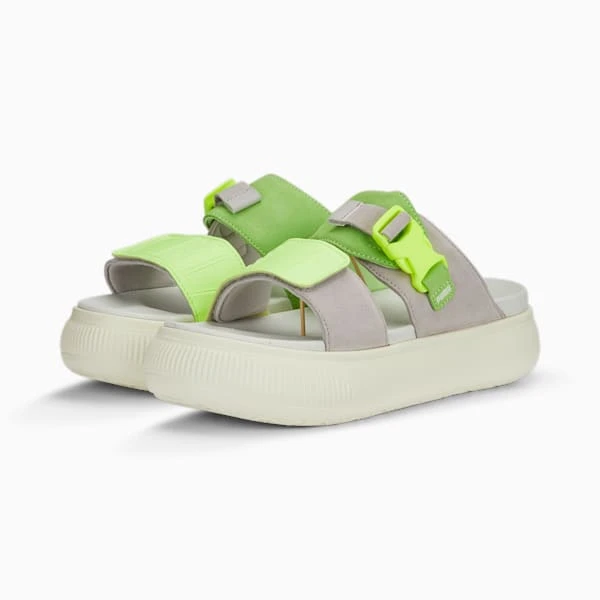 The Suede Mayu from PUMA plays with exaggerated proportions and a wrapped platform midsole, putting a bold streetwear spin on the classic Suede model. Fresh for summer, this Suede Mayu Sandal features plush textures and luxurious design elements, such as two suede straps with leather details and a TPU buckle. Our advanced IMEVA material at the midsole supports you with every step, so you can sink into comfort and bliss out in the warmer weather.